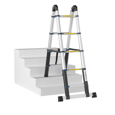 Topelt teleskoopilised alumiiniumredelid, valmistatud vastavalt rangetele EN-131 standardile. Redeli maksimaalne koormus on 150 kg.
