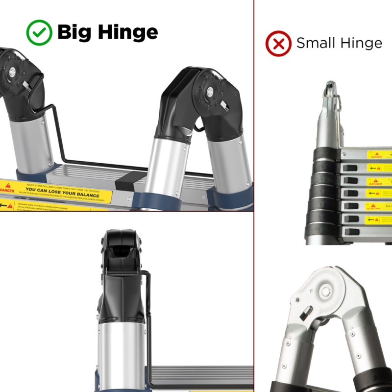 Kaksiklikkajalgs-teleskoopilised alumiiniumastred, mis on valmistatud vastavalt rangetele EN-131 standarditele. Redelite maksimaalne kandevõime on 150 kg.