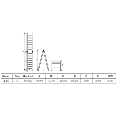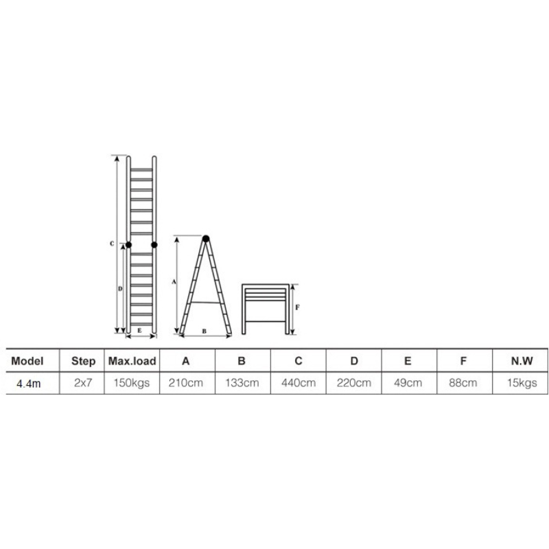 Topelt teleskoopilised alumiiniumastredelid, mis on valmistatud vastavalt rangele EN-131 standardile. Redeli maksimaalne kandevõime on 150 kg.