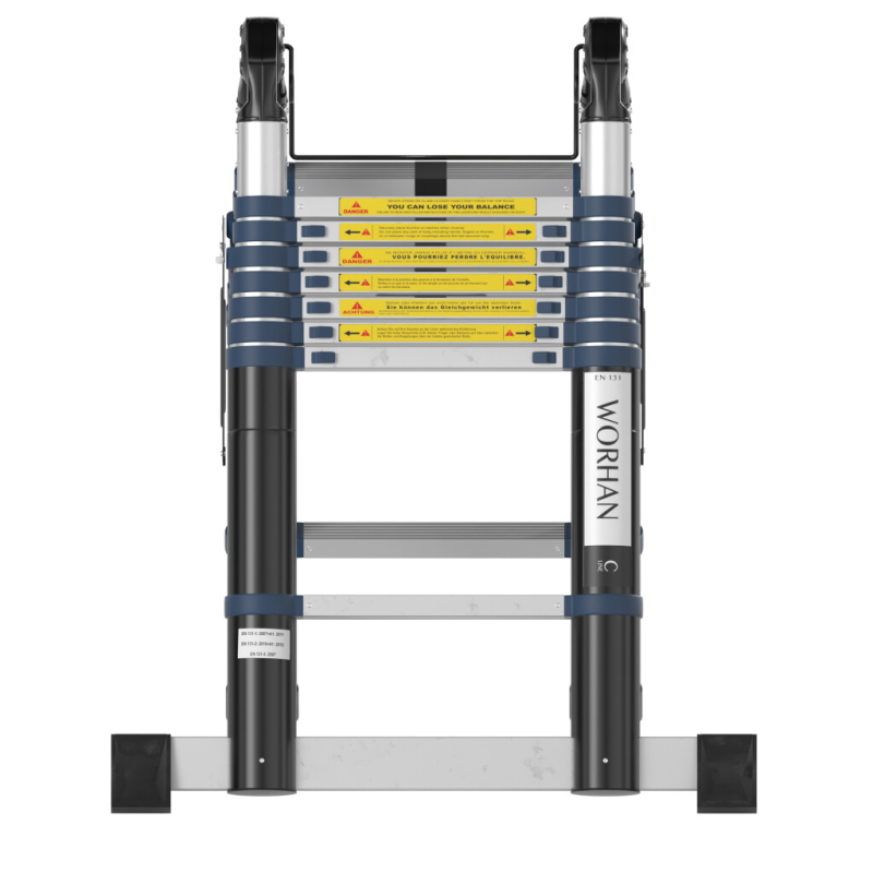 Topelt teleskoopilised alumiiniumredelid, valmistatud vastavalt rangetele EN-131 standardile. Redelite kandevõime on kuni 150 kg.