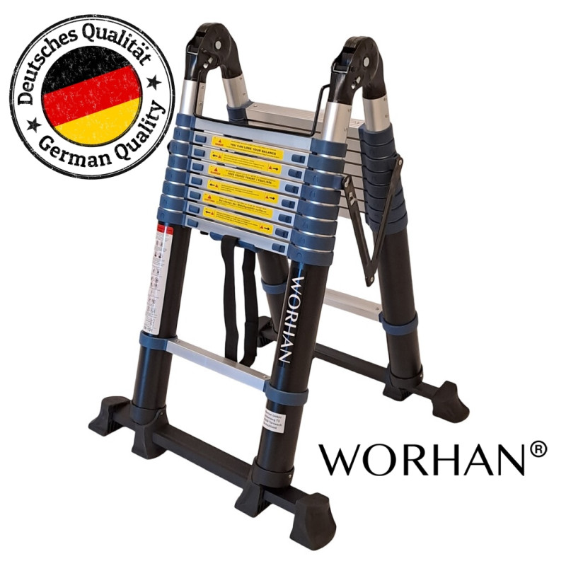 Topelt teleskoopilised alumiiniumredelid, mis on valmistatud vastavalt rangetele EN-131 standarditele. Redelite maksimaalne kandevõime on 150 kg.