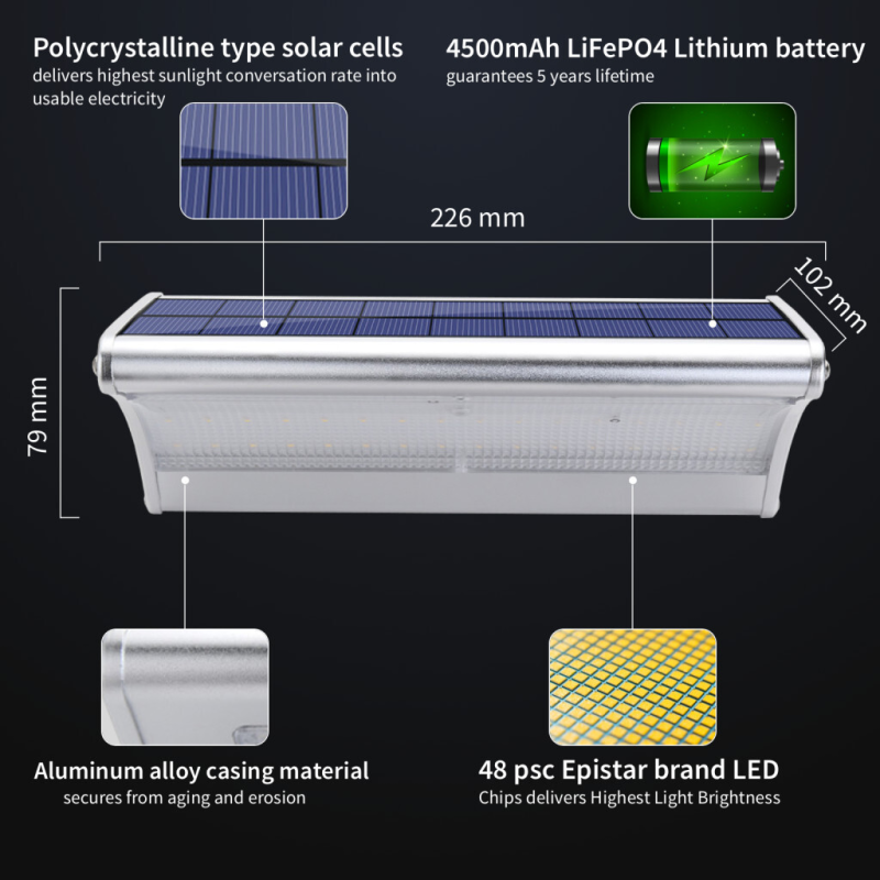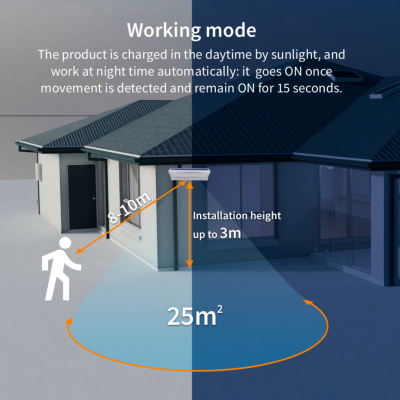 Päikeseenergial töötav valgusti võib valgustada kuni 25 m², ning selle töölämpemõõt on vahemikus -30 kuni +60°C.