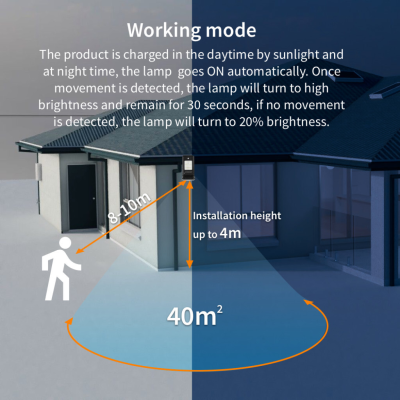 Päikeseenergial töötav valgusti võib valgustada kuni 40 m², ning selle töötemperatuur on vahemikus -30 kuni +60°C. Soovitatav paigalduskõrgus on kuni 3 meetrit maapinnast.