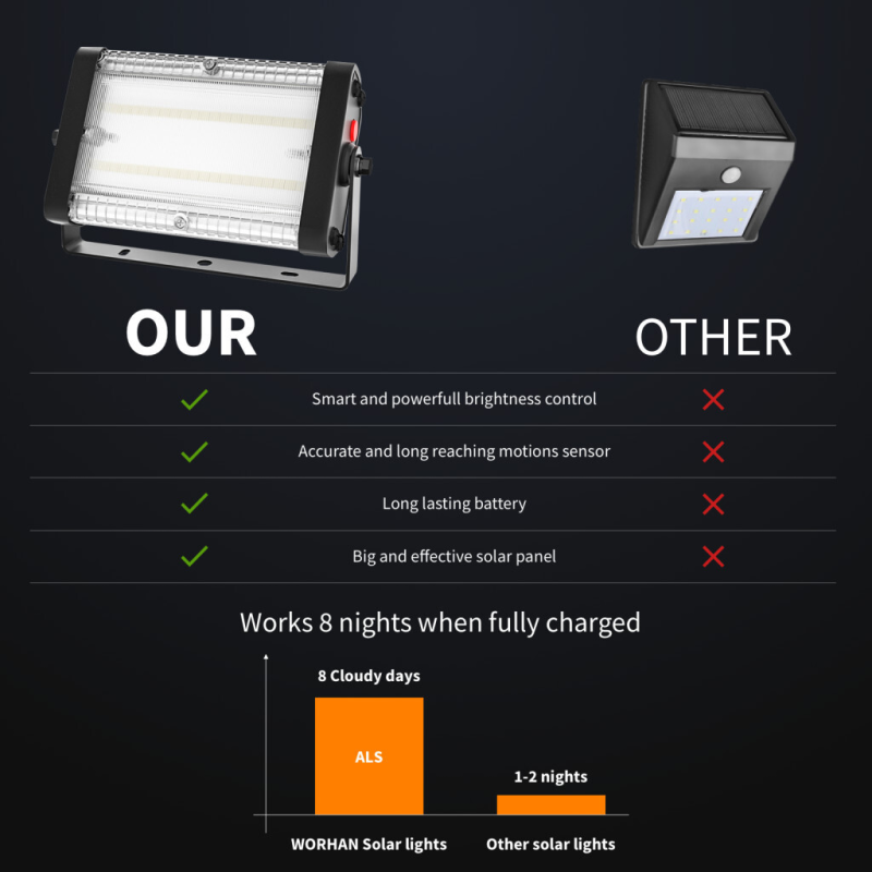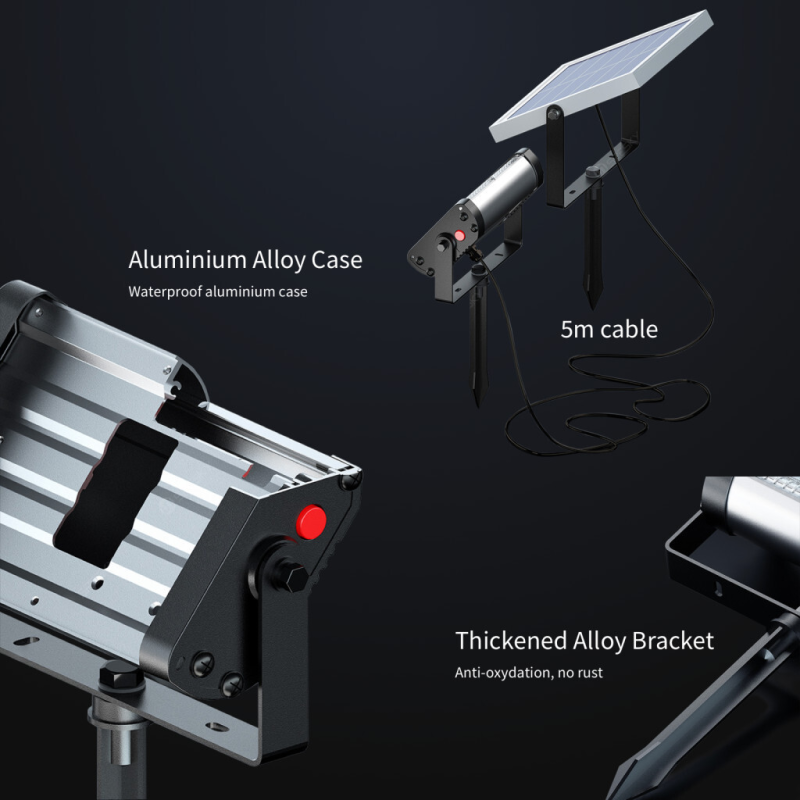 Valgusspekter: (3000K ± 300K)., ainult värvid PUNANE ROHELINE SININE on võimalikud. LED-ide arv - 40 tk., päikesepaneeli võimsus on 4,35W., Veekindel IP65., Kasutusideed: valgustus ja dekoratsioon aeda, õueala, puude, pargi, maja, turismipiirkonna jne jaoks., SAKSA KAUBAMÄRK. 2 AASTAT GARANTIID. ERANÕUDLIK KLIENDITEENINDUS. Tooted on testitud ja valmistatud järgides järgmisi standardeid: CE, RoHS, FCC. (Need sertifikaadid on saadaval peale päringu). Laadimisaeg: 8 tundi., Valgusaeg: 8 ööd+ ., LiFePO4 liitiumaku: 28,86 Wh (7,8H, 3,7 V)., Lambi mõõtmed: 104mm x 190mm., Töötemperatuur alates -20°C kuni +60°C. 4 valgustusrežiimi on võimalikud: a) PUNANE värv b) ROHELINE värv c) SININE värv d) Pidev värvimuutus PUNASEST ROHELISEKS ja SINISEKS., LED-indikaator näitab järelejäänud võimsustasemeid kolme astmega., Intelligente valgustustehnoloogia ALS2.0 + VFT + TCS koguöö valgustuseks, isegi pilvise või vihmase ilmaga., Materjal: alumiiniumisulamist & karastatud klaas., Päikesevalgusele ekspositsioon mõjutab otseselt aku laadimisaega.