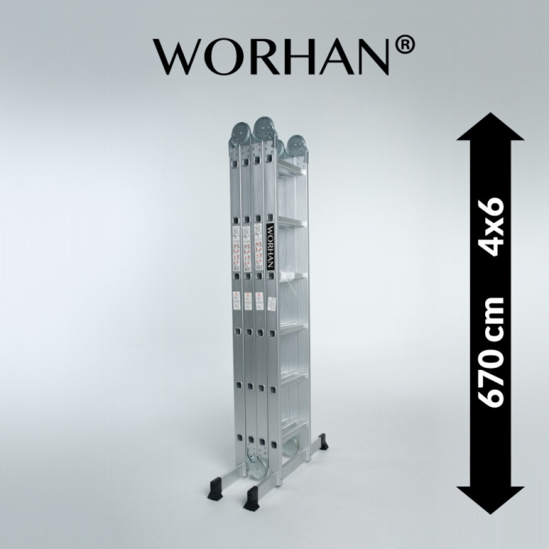 Mitmeotstarbeline kokkupandav alumiiniumastredel kahe stabilisaatoriga, valmistatud vastavalt rangest EN-131 standardile. Tredelite maksimaalne koormus on 150 kg.