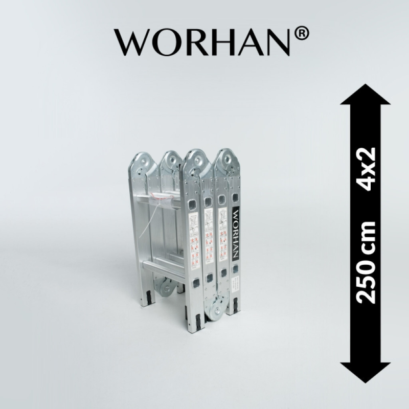 Multifunktsionaalsed kokkupandavad alumiiniumastredelid kahe stabilisaatoriga, valmistatud vastavalt rangele EN-131 standardile. Redelite maximaalne kandejõud on 150 kg.