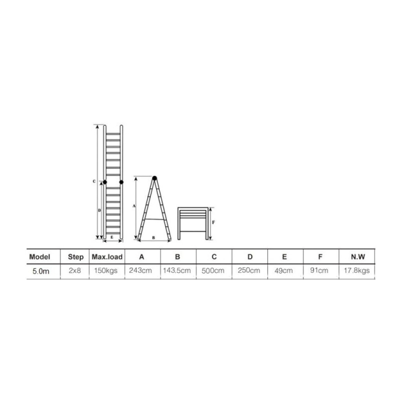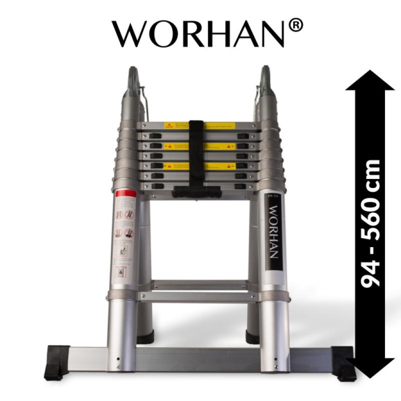 Topelt teleskoopredelid alumiiniumrõngastega, valmistatud vastavalt rangele EN-131 standardile. Redelite maksimaalne kandevõime on 150 kg.