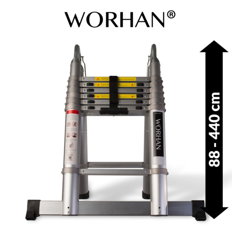 Kahekordsed teleskoopredelid alumiiniumrõngastega, mis on valmistatud vastavalt rangetele EN-131 standardile. Redelite maksimaalne kandevõime on 150 kg.