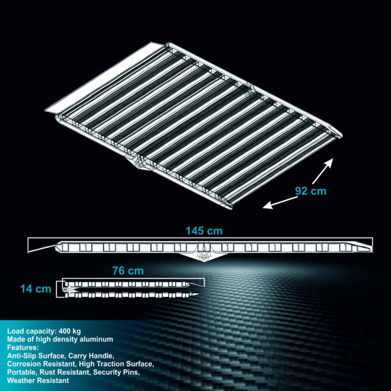 HR145 redeli maksimaalne kandevõime on 400 kg. Selle pind on loodud tagama suurepärase haarduvuse rehvidega, isegi märja või vihmase ilmaga. Toode on vastupidav välistele ilmastikutingimustele nagu niiskus, kuumus jne. Kõik meie tooted on uued, sertifitseeritud ja pakendatud tehases.
