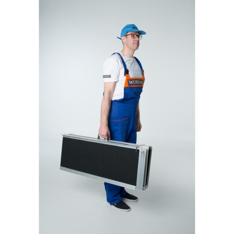Vastupidav ja suure koormusega ramp/platvorm, tänu selle ergonoomilisele disainile on äärmiselt mugav. Kokkupandult muutub ramp 2 korda väiksemaks ja 2 korda kitsamaks ning eriline käepide muudab rambi transportimise veelgi lihtsamaks. See toode on valmistatud kõrgekvaliteedilisest alumiiniumist ning vastab EN-131 ja CE standarditele, mis garanteerib tugevuse ja vastupidavuse.