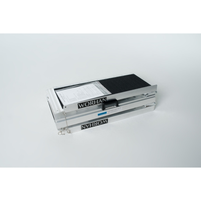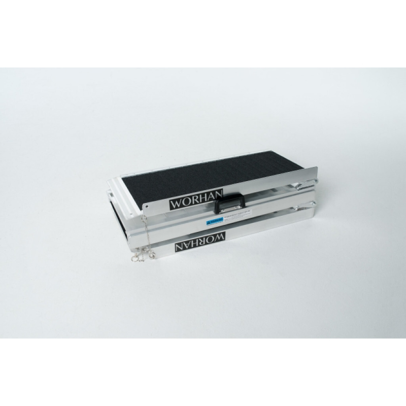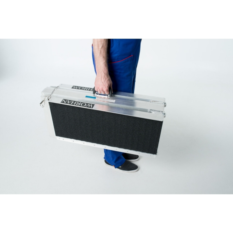 Vastupidav ja suure kandevõimega ramp/platvorm, tänu ergonoomilisele disainile on väga mugav. Kokkupanduna muutub ramp kaks korda väiksemaks ja kaks korda kitsamaks ning spetsiaalne käepide teeb rambi transportimise veelgi lihtsamaks. See toode on valmistatud kõrgekvaliteedilisest alumiiniumist ning vastab EN-131 ja CE standarditele, mis tagab tugevuse ja pika kasutusea.