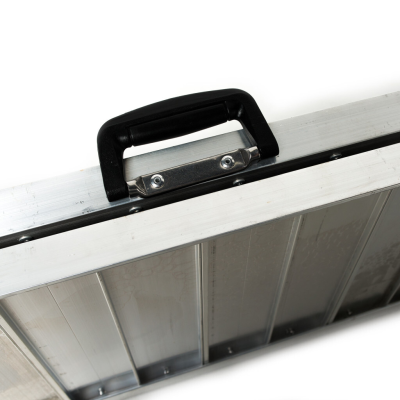 Vastupidav ja suure kandevõimega kaldtee/platvorm, tänu selle ergonoomilisele disainile on väga mugav. Kokkuvolditult muutub kaldtee kaks korda kitsamaks ning spetsiaalne käepide teeb transpordi veelgi lihtsamaks. See toode on valmistatud kõrgekvaliteetsest alumiiniumist ning vastab EN-131 ja CE standarditele, mis tagab stabiilsuse ja pikaealisuse.