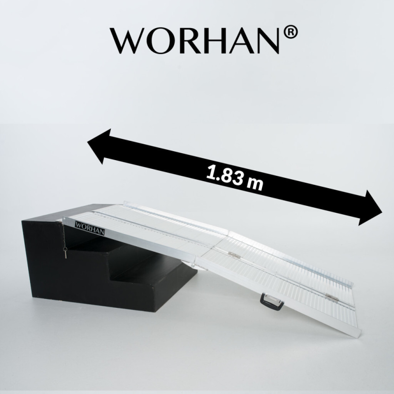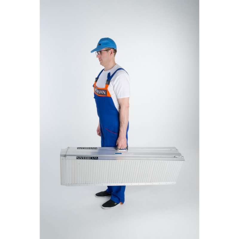 Vastupidav ja suure kandevõimega ramp/platvorm on tänu oma ergonoomilisele disainile väga mugav. Kokkupandult muutub ramp 2 korda väiksemaks ja 2 korda kitsamaks ning spetsiaalne käepide teeb rampide transportimise veelgi mugavamaks. See toode on valmistatud kõrgekvaliteedilisest alumiiniumist ning vastab EN-131 ja CE standarditele, mis tagab tugevuse ja vastupidavuse.