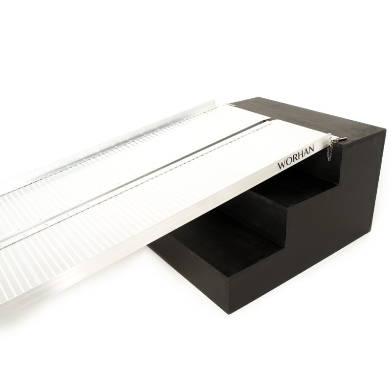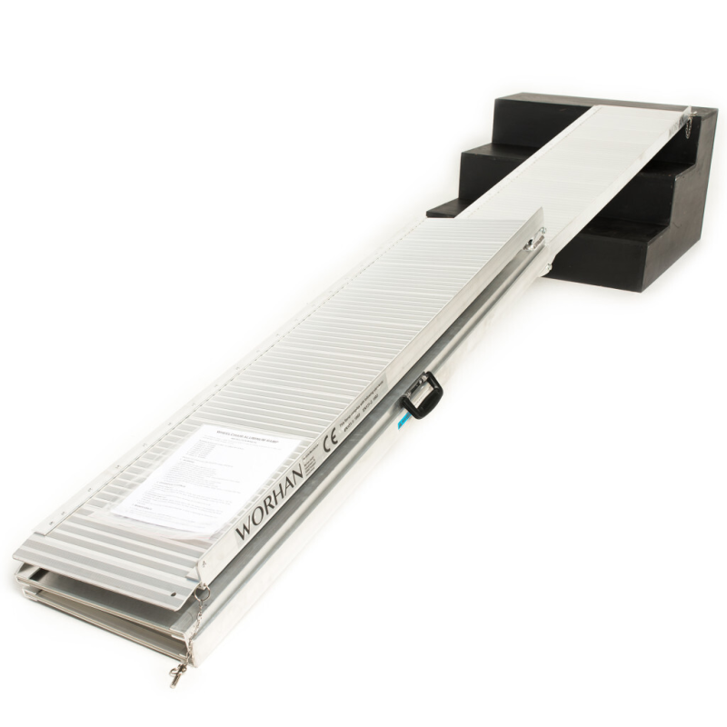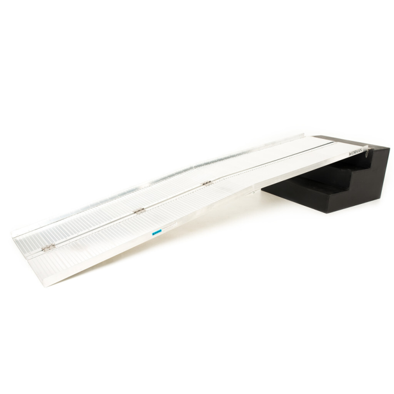 Vastupidav ja suure koormuse taluvusega ramp/platvorm, tänu oma ergonoomilisele disainile on äärmiselt mugav. Voltides muutub ramp kaks korda väiksemaks ja kaks korda kitsamaks ning spetsiaalne käepide teeb rambi transportimise veelgi lihtsamaks. See toode on valmistatud kõrgekvaliteedilisest alumiiniumist ja vastab EN-131 ning CE standarditele, mis tagab tugevuse ja pikaealisuse.
