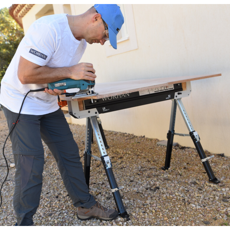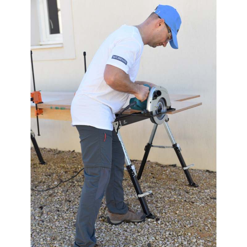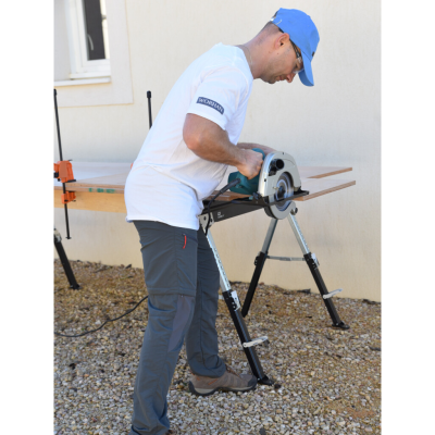 Tööpind ning tugijalad on kaetud spetsiaalse libisemiskindla materjaliga, mis tagab stabiilsuse töötamisel mis tahes materjalidega. Lõikamise alused on kokkupandavad ja ei võta hoiustamisel ega transportimisel palju ruumi.