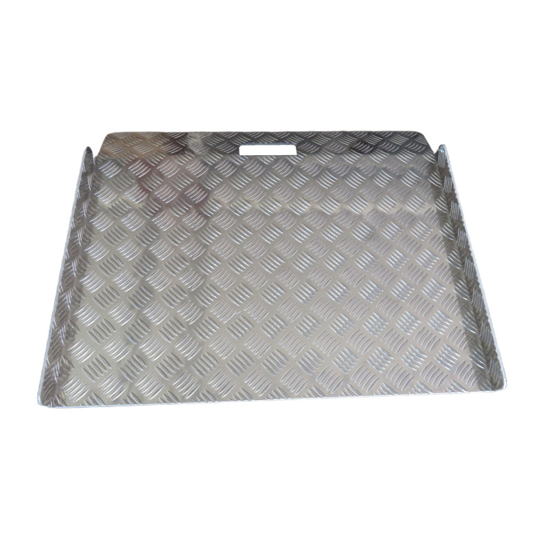 Ramp on valmistatud väga tugevast anodiseeritud alumiiniumist, mis on vastupidav rooste, korrosiooni ja keskkonnamõjude suhtes. Pind on kaetud libisemiskindla mustriga, mis tagab suurepärase haarduvuse isegi niisketes või vihmases tingimustes.