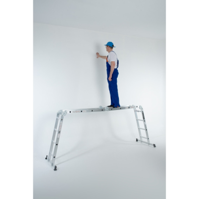 Kerge ja ohutu kasutada lukustusmehhanismKõrge kvaliteet ja stabiilsus* Uus kvaliteetne 4,6 m mitmeotstarbeline kokkupandav alumiiniumredel Mitmeotstarbeline toodete omadused:* Muudab raskesti ligipääsetavad tööd lihtsamaks.* Täiuslik sise- ja välisvärvimiseks, sisustamiseks, pööningule pääsemiseks, akende koristamiseks, vihmaveerennide puhastamiseks, isetegemise tegevusteks jne.* Redelit saab pooleldi treppidele seadistada.* Saab muuta trepiredeks või sirgeks redeliks.* Ülemine ots on lihtsalt kokkupandav ja redelit saab seina vastu toetada.* Kerge kaal, lihtne kokku panna. Saab kenasti kokku voltida lihtsaks hoiustamiseks või vedamiseks.* Valmistatud roostekindlast, kergest alumiiniumist. Koormusvõime 150 kg.* Saab muuta erinevateks konfiguratsioonideks erinevate tööde jaoks.* Valmistatud vastavalt EN131 osa 1 ja 2 spetsifikatsioonidele ning ohutussertifikaatidele. Toote spetsifikatsioonid:* Koormusvõime: 150 kg.* Valmistatud EN131 osa 1 ja 2 spetsifikatsioonide ja ohutussertifikaatide järgi.* Kaks stabilisaatorvarda suurte kummist jalgadega, mis tagavad suurepärase stabiilsuse töö ajal.Tootekirjeldus: See mitmekohaline redel on tõenäoliselt ainus redel, mida kunagi vajate. Ideaalne töödeks majas, töökojas ja aias. Selle ainulaadne mitmekohaline hingesüsteem võimaldab redelil hõlpsasti muuta erinevatesse konfiguratsioonidesse. Vastupidavalt valmistatud, sobib see redel raskeks kasutuseks.